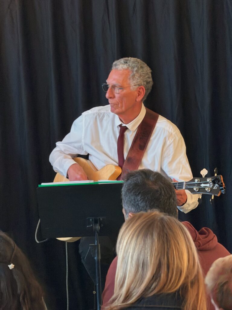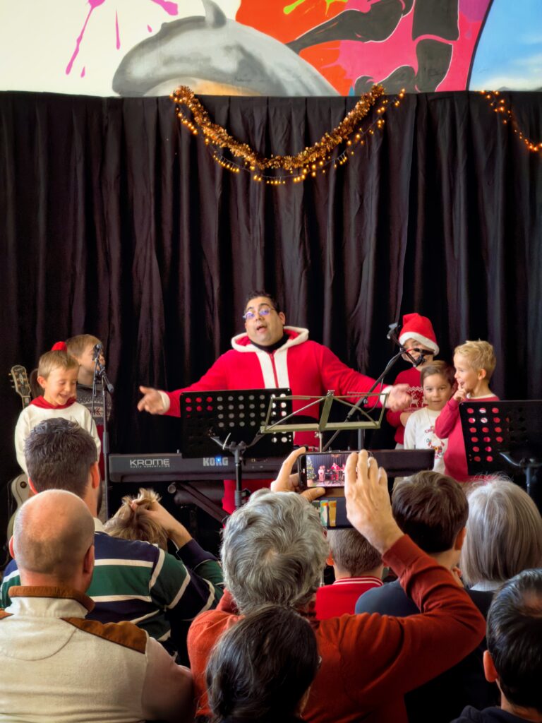 Au programme du spectacle de Noël cette année, comme de coutume, c’est la classe d’éveil musical emmenée par Benoît qui a ouvert les festivités avec une chanson dans le thème « Le Père Noël est un boulet », chantée avec une énergie communicative.