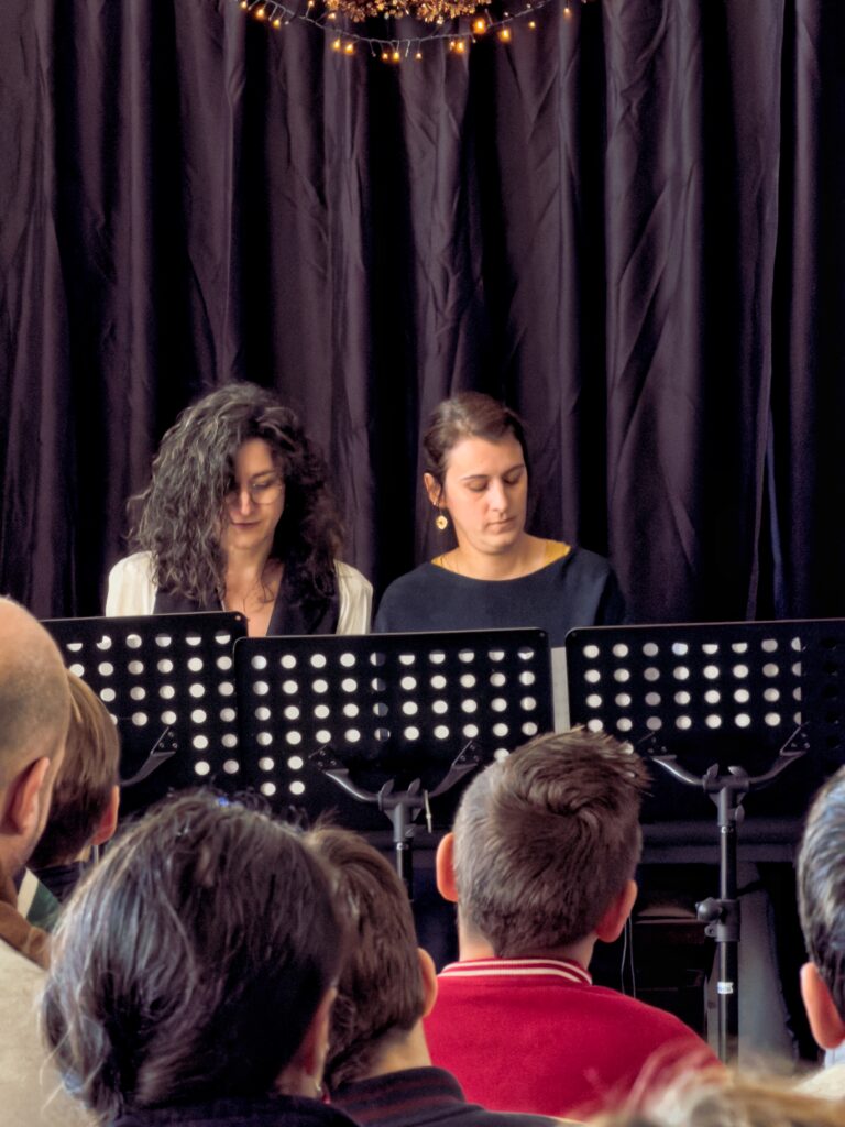 Ensuite, les élèves de Jana ont joué différents morceaux, tous en quatre mains avant un interlude de guitares (conclu par une belle réinterprétation d’une chanson de « M », « La bonne étoile » qui a été accompagnée par le public).